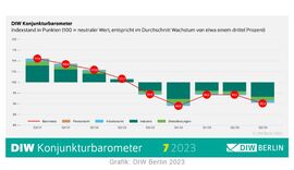 Berlin - Das Konjunkturbarometer des DIW Berlin liegt im Juli bei 90,3 Punkten für das dritte Quartal und damit noch einmal merklich unter dem Ergebnis für das zweite Quartal.