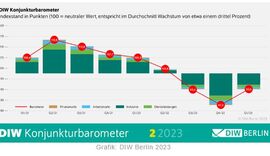 Berlin - Das Konjunkturbarometer des Deutschen Instituts für Wirtschaftsforschung (DIW Berlin) ist im Februar um knapp zwei auf nun 93,6 Punkte gesunken und liegt damit wieder unter der neutralen 100-Punkte-Marke.