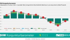 Berlin - Das Konjunkturbarometer des Deutschen Instituts für Wirtschaftsforschung (DIW Berlin) hat sich im Januar deutlich erholt. Es liegt nun bei 95,4 Punkten für das erste Quartal.