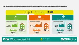 Berlin - Eine DIW-Studie Studie vergleicht drei Szenarien zur Schaffung einer fossilfreien Energieversorgung und kommt zu dem Ergebnis: Elektrifizierung kostengünstigster und effizientester Weg.