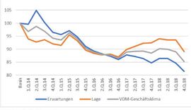 Berlin - Der Geschäftsklima-Index des VDM für das 4. Quartal 2018 liegt bei 85,2 Indexpunkte, rund vier Punkte hinter dem letzten Quartal.