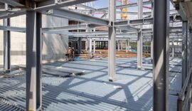 Düsseldorf - Stahltragwerk eines siebengeschossigen Büro- und Geschäftsgebäudes ist so konzipiert, dass im Brandfall die Standsicherheit des Gebäudes sichergestellt ist.