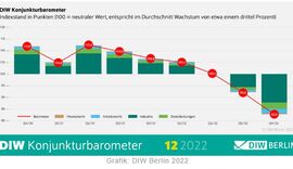 Berlin - Das Konjunkturbarometer des Deutschen Instituts für Wirtschaftsforschung (DIW Berlin) liegt im Dezember fast unverändert bei 82,8 Punkten und stabilisiert sich damit auf höherem Niveau.