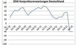 Mannheim - Die ZEW-Konjunkturerwartungen für Deutschland gehen in der aktuellen Umfrage vom April 2022 um 1,7 Punkte auf einen Wert von minus 41,0 Punkten zurück.