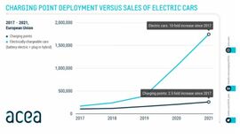 Brüssel (B) - Verkäufe von Elektroautos stiegen zwischen 2017 und 2021 um mehr als das 10-fache, die Zahl der öffentlichen Ladegeräte in der EU im gleichen Zeitraum aber nur um das 2,5-fache.