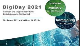 Düsseldorf - Der DigiDay steht unter dem Motto „Chancen und Möglichkeiten durch Digitalisierung im Stahlhandel“ und findet ausschließlich online statt.