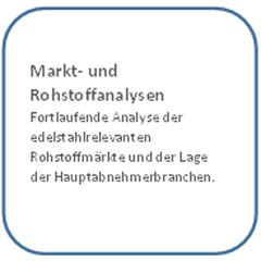 Fortlaufende Analyse der edelstahlrelevanten Rohstoffmärkte und der Lage der Hauptabnehmerbranchen.
