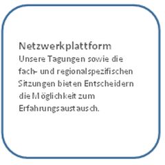 Unsere Tagungen sowie die fach- und regionalspezifischen Sitzungen bieten Entscheidern die Möglichkeit zum Erfahrungsaustausch.
