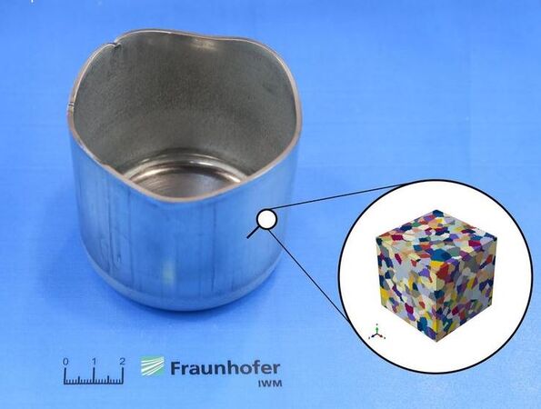 Das Fraunhofer IWM hat mit seinem Virtuellen Labor eine Möglichkeit geschaffen, diese Lücke zu schließen. »Wir bestimmen die Richtungsabhängigkeit der mechanischen Eigenschaften bei Blechwerkstoffen per Simulation«, erklärt Alexander Wessel, Wissenschaftler am Fraunhofer IWM in der Gruppe Umformprozesse. »Dabei bilden wir die Werkstoffe auf Mikrometerebene in einem Mikrostrukturmodell ab und sagen das makroskopische richtungsabhängige Werkstoffverhalten auf Basis der zugrundeliegenden physikalischen Mechanismen in der Mikroebene voraus.« Auf diese Weise lassen sich auch solche Blechwerkstoffe charakterisieren und die entsprechenden Werkstoffkennwerte für die Auslegung des Umformungsprozesses ermitteln, bei denen dies allein aus dem Experiment nicht möglich ist. »Bei unserem Vorgehen mit dem Virtuellen Labor kommen wir mit wenigen experimentellen Datenpunkten aus und errechnen uns die fehlenden Daten«, erläutert Wessel. Der zeitliche und finanzielle Aufwand ist somit im Vergleich zu einer rein experimentellen Charakterisierung deutlich niedriger. Für Unternehmen bedeutet das, dass sie die Entwicklungszeiten verkürzen und Kosten bei der Einführung neuer Umformprozesse einsparen.