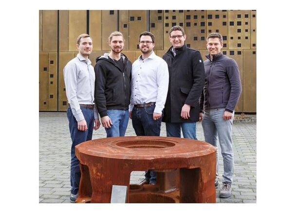 Bildtext: Dr. Christoph Bleicher (zweiter von rechts) steht mit seinem Team im Fraunhofer LBF für die Qualifizierung gegossener Komponenten.