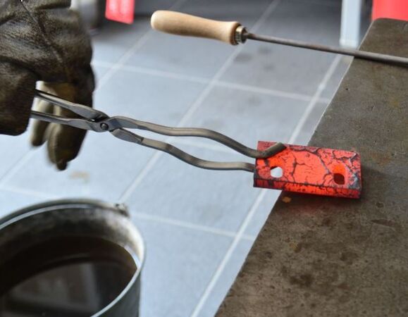 Es wird heiß im Labor, als sich der Kammerofen öffnet und Jan Philipp Berges eine Probe daraus entnimmt. Das Stück Metall glüht gelb und rot auf, dann löscht der Student es im Wasser ab. Bei mehr als 1.000 Grad Celsius verbinden sich die in der aufgetragenen Paste enthaltenen Pulverpartikel zu einer einheitlichen, metallischen Schicht auf der Oberfläche des Bauteils, die es künftig vor Verschleiß schützen soll – eine Technik, die Prof. Dr. Jürgen Peterseim und Dr. Tobias Schniedermann mithilfe von Studierenden am Fachbereich Maschinenbau der FH Münster erforschen. Im durch den Industriepartner Altenburger Maschinen Jäckering GmbH finanzierten und von ihm beauftragten Projekt „Ultra-Coat“ entwickelt das Team diese Beschichtungstechnologie weiter.