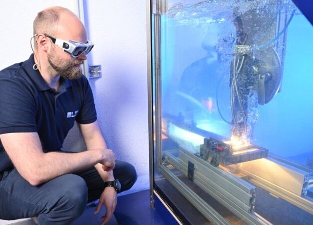 Unterwasser-Bauwerke wie Offshore-Windanlagen, Brückenpfeiler oder Hafeninfrastruktur sind extremen Bedingungen ausgesetzt. Beschädigungen an deren Stahlstrukturen zu reparieren, ist aufwendig und teuer. Im Projekt „RoLaKI" arbeiten das LZH, das Institut für Informationsverarbeitung (TNT) der Leibniz Universität Hannover und die OFTEC Handelsgesellschaft für Oberflächentechnik mbH an einer Lösung: Sie entwickeln ein Verfahren, mit dem sich Stahlstrukturen unter Wasser großflächig beschichten oder durch „Andrucken" neuer Strukturen reparieren lassen.