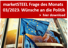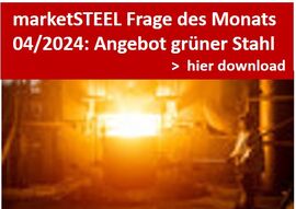 Frage des Monats Mai 2023: Skepsis und Zurückhaltung bei Grünem Stahl - Bei 52 % ist das Thema noch nicht relevant, nur 19 % haben bereits teilweise Angebot - kein Unternehmen bietet ausschließlich Grünen Stahl an.