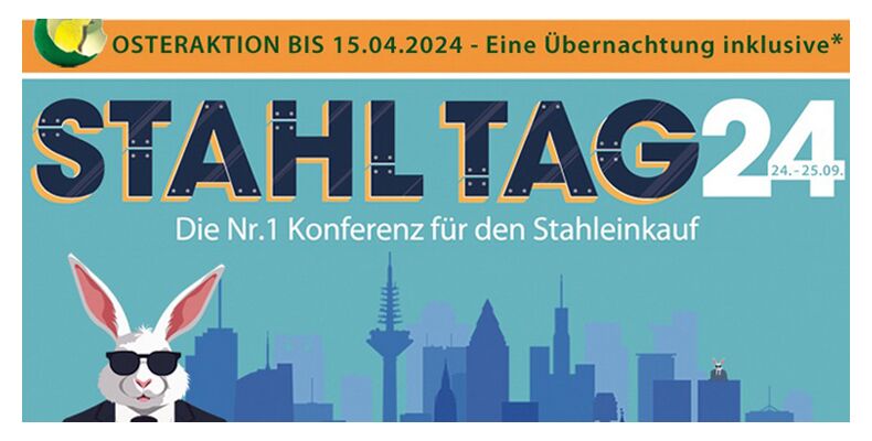 Vom 24. - 25. September 2024 findet in Frankfurt der 19. Stahl Tag statt. Kongress-Location ist das Mainhaus Frankfurt City.