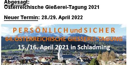 Das Österreichische Gießerei-Institut (ÖGI) bedauert sehr, dass sie aufgrund der derzeitigen und absehbaren Entwicklungen in Österreich und Europa hinsichtlich COVID-19, die Österreichische Gießerei-Tagung, nach 2020, auch in diesem Jahr absagen müssen. Das ÖGI meint, eine Online-Veranstaltung kann die persönlichen Kontakte und Gespräche einer Tagung nicht ersetzen. Deshalb fällt die Tagung 2021 aus und wird erst 2022 wieder stattfinden.