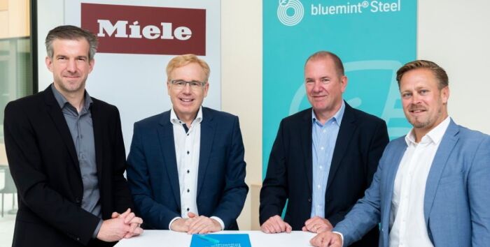 Die thyssenkrupp Steel Europe AG und die Miele Gruppe unterzeichneten im Oktober eine Absichtserklärung für die Belieferung mit klimafreundlichem Stahl aus der für das Jahr 2026 am Standort Duisburg geplanten Direktreduktionsanlage. Die erste wasserstoffbetriebene Direktreduktionsanlage mit nachgeschalteten Einschmelzern wird mit einer Kapazität von über zwei Millionen Tonnen den CO2-Ausstoß von thyssenkrupp Steel bereits um mehr als 20 Prozent senken. Aufgrund des sich im Aufbau befindlichen Marktes für grünen Wasserstoff wird in der Hochlaufphase zunächst Erdgas eingesetzt, welches im Vergleich zur kohlebasierten Hochofenroute bereits eine deutliche CO2-Ersparnis bewirkt. Ab Inbetriebnahme der Anlage wird thyssenkrupp Steel den führenden Hersteller von Premium-Hausgeräten mit klimafreundlichem bluemint® Steel beliefern. In den Folgejahren sollen die abgenommenen Mengen schrittweise steigen, 2030 wollen Miele und thyssenkrupp zu 100 Prozent auf bluemint® Steel umstellen.