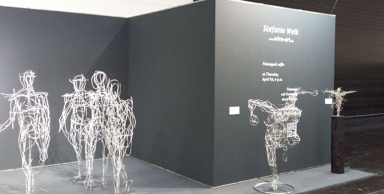 Zur wire 2016 steht ihre Installation „Aeronauten“ aus mehreren lebensgroßen, aus Stahldraht geschweißten und lackierten Figuren, im Mittelpunkt der Sonderschau in der Halle 15 G 60. Einzelne Figuren sind zwar unterscheidbar, scheinen sich aber dennoch gegenseitig zu durchdringen. „Ich sehe den Menschen als ein offenes System, das nicht klar gegenüber seiner Umgebung abgegrenzt ist“, so die Künstlerin. Zu ihrem persönlichen Ausstellerjubiläum „20 Jahre Stefanie Welk auf der wire" - veranstaltet die Künstlerin eine Verlosung am Donnerstag, den 7. April um 16.00 Uhr. Bis dahin können interessierte Aussteller und Besucher an der Verlosung teilnehmen.