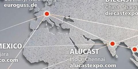 Darüber hinaus ist die NürnbergMesse Group in Sachen Druckguss aktiv auf der CHINA DIECASTING (jährlich in Shanghai), der ALUCAST, die in allen geraden Jahren in Indien an wechselnden Standorten stattfindet sowie der EUROGUSS Mexiko, die in Guadalajara veranstaltet wird.