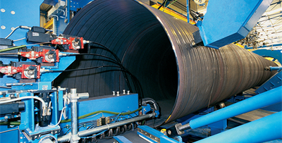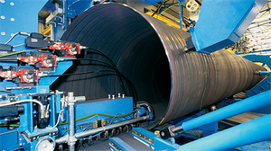 Quelle: ArcelorMittal, marketSTEEL; Foto: Schweißarbeiten an den Rohren (Bild: © Corinth Pipeworks)