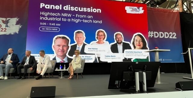 Drei Themen stehen dieses Jahr im Focus der Vorträge: Metaverse, Nachhaltigkeit und Hightech NRW. Unter dem Titel Hightech NRW fand auch die Panel Diskussion „From an industriel to a high-tech land“ statt. Gäste waren Prof. Dr. Klaus-Dieter Maubach, CEO Uniper, Ilse Henne, CTO thyssenkrupp, Tobias Bartz, CEO Rhenus Logistics und Mark Klein, CDO ERGO Group. In Zeiten großer Transformationen mit dem Ziel, effektiver aber auch nachhaltiger zu wirtschaften sind auch große, traditionelle Unternehmen daran interessiert, nachhaltiger zu werden bzw. zu sein. Klimaschutz, Energie- und Materialeffizienz stehen im Focus.