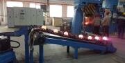 Im ersten Schritt des Herstellungsprozesses werden runde Stahlstäbe von einer Kreissäge in Stücke gesägt und anschließend durch Induktion erwärmt. Als nächstes nimmt ein Roboterarm die rot glühenden Teile vom Zuführungsband und legt sie in den Schuler-Hammer ein. Die geschmiedeten Stahlkugeln entnimmt ein Mitarbeiter dann von einer im Werkzeugraum integrierten Abfuhrrutsche. Nach ihrer Abschreckung und Härtung sowie dem darauf folgenden Anlassverfahren und der Qualitätskontrolle sind die Mahlkugeln einsatzbereit.
