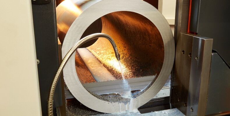 Der Schnittbereich der KASTOwin tube A 5.0 liegt für Rundmaterial bei 500 Millimetern, die kleinstmögliche Abschnittlänge bei zehn Millimetern. Die Schnittgeschwindigkeit lässt sich per frequenzgeregeltem Antrieb zwischen zwölf und 150 Metern pro Minute stufenlos einstellen. Hartmetall-Sägebänder, wie sie für verschiedene Rohrmaterialien notwendig sind, lassen sich auf der KASTOwin tube A 5.0 ohne weiteres Zubehör einsetzen. Die Spannung des Sägebands erfolgt hydraulisch, die Reinigung mit einer auswechselbaren, elektrisch angetriebenen Späneräumbürste. Spannstock und Sägevorschub sind mit spielfreien Linearführungen ausgestattet, Kugelrollspindelantriebe sorgen für kontrollierte Schnitt- und Materialvorschub-Bewegungen.