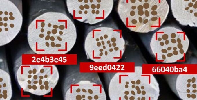 Bildtext 1: Die hochtemperaturstabile Tinte von CeraCode®: Anwendungsbeispiel Stabstähle: Beim Kundenzuschnitt und der zugehörigen Logistik können Prozessinformationen verloren gehen. Bei der Vereinzelung kann nun per Freiform-Kennzeichnung eine freie, zufällig angeordnete Markierung aufgebracht werden. Aus deren eindeutigen Merkmalen wird eine individuelle ID generiert, die die weitere Rückverfolgbarkeit des jeweiligen Bauteils gewährleistet.