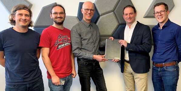 Bildtext: Tata Steel Nederland hat Primetals Technologies mit der Implementierung einer hochmodernen Prüfanlage für Pellets beauftragt. Von links nach rechts: Piotr Ksen, Projektleiter, Hans-Jörg Baumgartner, Prozessingenieur, beide Primetals Technologies; Jan Baalbergen, Projektleiter bei Tata Steel IJmuiden; Christoph Aichinger, Head of Agglomeration, und Thomas Marton, Commercial VP Ironmaking, beide Primetals Technologies.