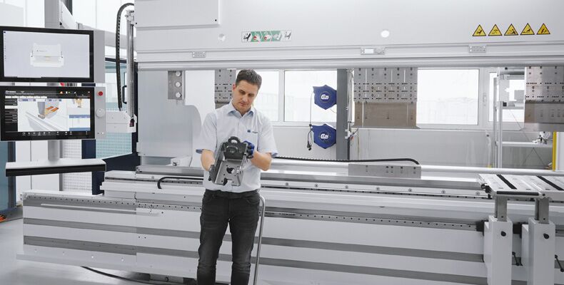 Die erste Maschine der neuen Generation verfügt über eine Presskraft von 400 Tonnen und kann somit auch dicke und kurze Bleche mühelos bearbeiten. Dank der großen Abkantlänge von 4,40 Meter eignet sie sich aber auch für lange, dünnere Bauteile. Besonders feste Materialien wie die Maschinenstähle Hardox oder Weldox biegt die Maschine problemlos. Zudem ermöglicht sie Anwendern das sogenannte Stationsbiegen, bei dem sich verschiedene Ober- und Unterwerkzeuge nebeneinander einsetzen lassen. Damit können Produktionsmitarbeiter unterschiedliche Bauteile und Biegungen bearbeiten, ohne jedes Mal die Rüstung der Maschine zu ändern. Die TruBend 8000 ist damit vor allem für Unternehmen interessant, die große Bauteile in kleinen Stückzahlen biegen. Typische Branchen, für die neue Maschinengeneration sind der Fahrzeug- oder Maschinenbau sowie die Gebäudetechnik. Aber auch universelle Anwendungen für Job-Shopper sind bestens geeignet.