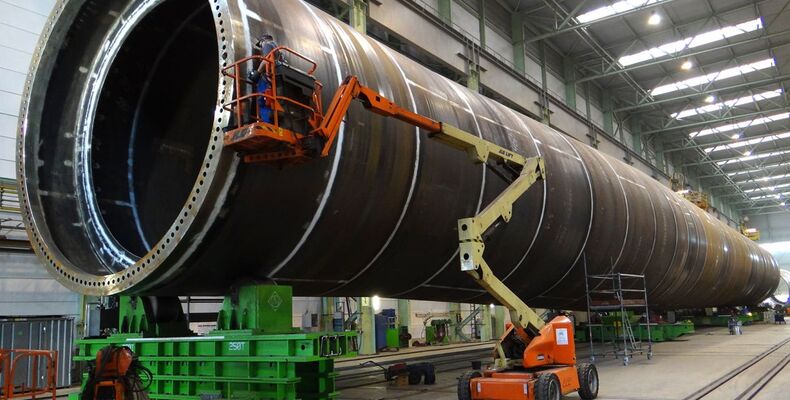 Quelle: IPH - Institut für Integrierte Produktion Hannover Bildtext: Rohre aus armdicken Stahlblechen fertigt die EEW Special Pipe Constructions GmbH in Rostock. (Foto: EEW SPC)