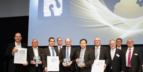 Für einen 5,43 Kilogramm schweren „Verteiler““, der im Feinguss-Verfahren hergestellt wurde, ging der „Substitutions-Award“ an das Hongkonger Unternehmen Impro International, vertreten durch Kailiang Chen (Managing Director Impro Europe SARL & Impro Deutschland GmbH) sowie Volker Ritzel (Sales Manager Impro Deutschland GmbH). Hervorzuheben ist dabei, dass ein vorher komplett bearbeitetes Teil durch ein wirtschaftliches Gussprodukt aus Edelstahl ersetzt – und dadurch eine ressourcenschonende und nachhaltige Fertigung realisiert werden konnte.
