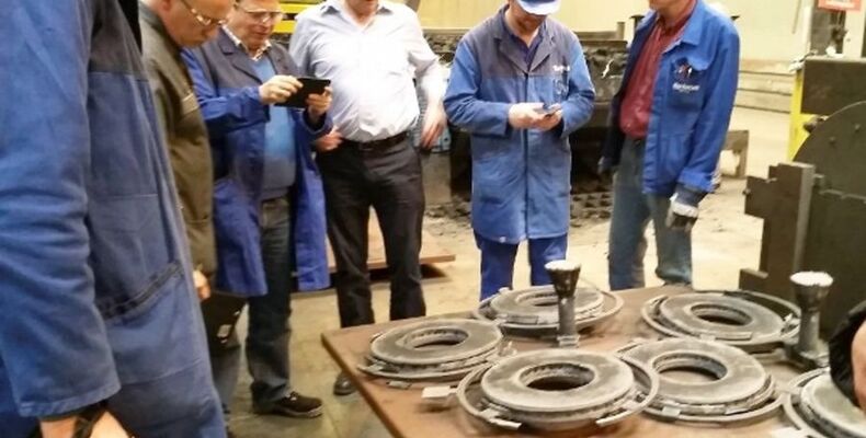 Quelle: BDG Bildtext: Begutachtung der abgegossenen Bremsscheiben-Rohteile (Foto: Buderus Guss)