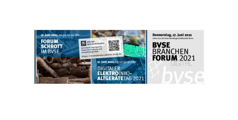 Das kombinierte Branchenevent des bvse Fachverbandes Schrott, E-Schrott und Kfz-Recycling, das sich zum ersten Mal digital im Zoomformat präsentiert, beginnt am 17. Juni ab 10:30 Uhr mit dem Forum Schrott und setzt sich nach der virtuellen Mittagspause ab 13:30 Uhr mit dem digitalen Elektro(nik)-Altgerätetag fort.
