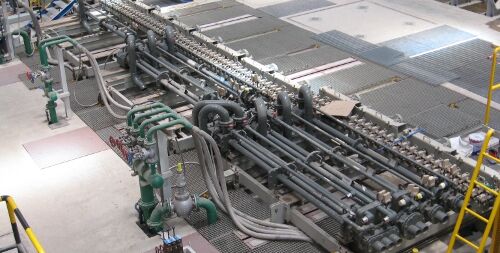 Das Ausgangsmaterial für die Stabwalzstraße bilden 6 und 12 Meter lange Knüppel aus Kohlenstoffstahl mit quadratischen Querschnitten von 120x120 bis 160x160 Millimeter, die zu Bewehrungsstahl mit Durchmessern zwischen 8 und 50 Millimetern verarbeitet werden. Um die Produktivität des Werks zu erhöhen, werden Stäbe mit Durchmessern zwischen 10 und 12 Millimetern im zweiadrigen Betrieb und Stäbe mit 8 Millimeter Durchmesser im dreiadrigen Betrieb gewalzt.