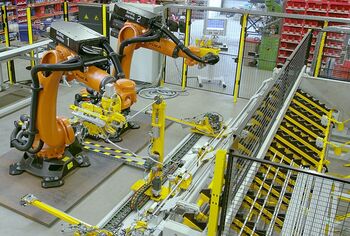 Im Fertigungsprozess werden zunächst über ein Magazin Rohre im Bund eingelegt, vereinzelt und rotationssymmetrisch entsprechend der Flanschenstellung orientiert. Anschließend übernimmt einer der beiden Roboter das Rohr und übergibt es an eine bewegliche Spannvorrichtung. Diese ist mit einer entsprechenden Hochhaltung für lange Rohre ausgestattet. Dabei ermöglicht die Spannvorrichtung den Robotern die Rohre von einer oder von zwei Seiten parallel zu bearbeiten.