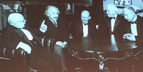 Die Festrede hielt Herr Prof. Dr. Reiner Kirchheim. Er zeigt die unterschiedlichen Facetten der Forschung auf und stellt die einzelnen Abteilungen des Max-Planck-Institutes für Eisenforschung vor wie z.B. computergesteuerte Materialdesign oder die Weiterentwicklung von Materialien wie Legierungen. Keimzelle der Max-Planck-Institute sei ein Treffen in Berlin gewesen, auf dem das unten eingefügte Foto entstanden ist.
