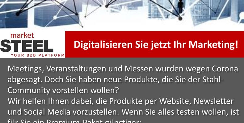 Jetzt Premium-Paket buchen und für ein Jahr marketSTEEL als Multiplikator nutzen