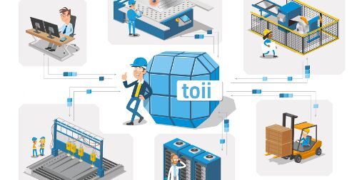 thyssenkrupp vernetzt seinen Maschinenpark in der Werkstoffsparte mit einer neuen digitalen Plattform, die Anlagen direkt miteinander kommunizieren lässt. In Zukunft soll toii durch Predictive Maintenance auch den Wartungsbedarf der Maschinen voraussagen. Einserseits steht der Name toij für die Umkehrung von IIoT, der Abkürzung für „Industrial Internet of Things“. Andererseits erinnert er – durch den Wortklang – an das englische „toy“ (Deutsch für Spielzeug). Der Name soll so vermitteln, dass die Anbindung eines stark heterogenen Maschinenparks an vorhandene IT-Strukturen über die neue Plattform nun spielend leicht ermöglicht wird. Die digitale Plattform haben Unternehmensexperten aus dem Bereich Software Engineering entwickelt.