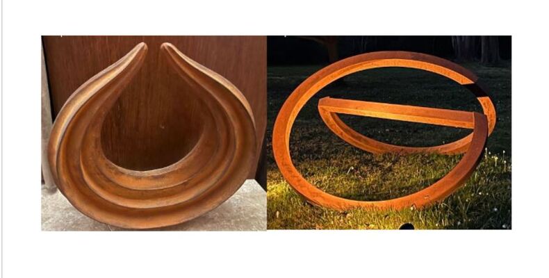 Neben Mehlers Werken beeindrucken auch die prägnanten Skulpturen aus Cortenstahl von Sonja Edle von Hoeßle. Diese sind ohne Anfangs- und Endpunkt als Endlosschleife verschweißt und verändern ihr Erscheinungsbild mit der Bewegung und dem Blickwinkel des Betrachters. Zugleich wandeln sich die Durchblicke und die ausschnitthafte Rahmung des umgebenden Raumes, sodass sie gleichsam Zeichnungen im Raum sind. Die gebürtige Wiesbadenerin studierte an der FH Mainz und Würzburg Visuelle Kommunikation, Fachbereich Gestaltung, und errang mit ihren Arbeiten zahlreiche Auszeichnungen, wie die Atelierförderung des Bayerischen Kulturfonds, den Kulturförderpreis der Stadt Würzburg und den Kunstpreis des Kunstvereins Bayreuth. In zahlreichen europäischen Ausstellungen und Galerien konnte sie die Besucher bereits von und mit ihren Arbeiten begeistern.