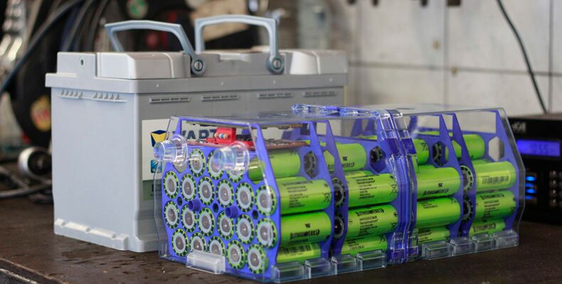 Trotz aller Bemühungen um Leichtbau blieben Starterbatterien für Fahrzeuge bisher und seit vielen Jahren technologisch unverändert. Die ursprüngliche Blei-Schwefelsäure-Batterie bringt etwa 30 kg auf die Waage, schon deutlich leichter sind die aktuelleren Lithium-Gel-Batterien mit immerhin noch etwa 10 bis 15 kg. In beiden Fällen befinden sich die Energiespeicher in Plattenbauweise in einem standardisierten rechteckigen Gehäuse, das ebenfalls seit Jahrzehnten unverändert gebaut wird.