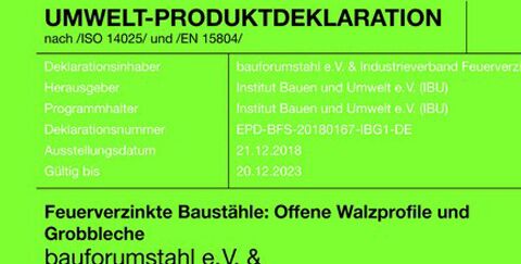 Die aktuelle EPD, eine Kurzversion der EPD sowie das Beiblatt "Recycled Content" gemäß LEED stehen unter www.feuerverzinken.com/nachhaltigkeit als Download zur Verfügung.