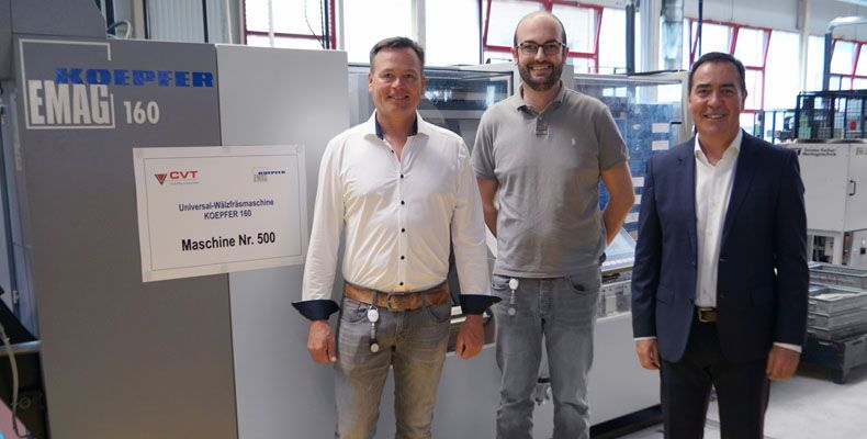 Der Beginn dieser Zusammenarbeit liegt bereits mehr als zwei Jahrzehnte zurück. Seitdem hat sich viel getan: Mittlerweile sind bei CVT 25 Maschinen von EMAG Koepfer im Einsatz, darunter Jubiläumsmaschinen wie die 100., 350. und nun auch 500. Wälzfräsmaschine K 160. Die langjährige und vertrauensvolle Zusammenarbeit der beiden Unternehmen mündete kürzlich in der Jubiläumsfeier der 500. K 160 und lässt auf eine weiterhin so erfolgreiche Zusammenarbeit hoffen.