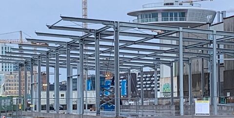 Das Cruise Center Baakenhöft wird bis zur Fertigstellung des Südlichen Überseequartiers mit seinem integrierten Cruise Center HafenCity bis 2023 als Ausweichterminal dienen und wird darüber hinaus als multifunktionale Veranstaltungsstätte genutzt werden. Der als eingeschossige Halle in feuerverzinkter Stahlskelettbauweise ausgeführte Bau verfügt über eine Grundfläche von rund 1.050 Quadratmetern mit einer Länge von 68,50 Metern und einer Breite von 15,50 Metern. Das Stahltragwerk besteht aus einer Reihung von 10 Rahmenelementen mit Stützen aus HEM 240 bzw. HEM 280-Profilen und HEM 280-Riegeln, die jeweils mittels 4 HEB 200-Profilen verbunden wurden.
