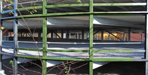 Quelle: Institut Feuerverzinken Bildtext: Decken mit feuerverzinkter Bewehrung eines Parkhauses in feuerverzinkter Stahlbauweise (Foto: Institut Feuerverzinken)