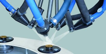 Quelle und Foto: Seckler AG / Bildtext: Bei dem neuen Sandstrahlautomaten stehen bis zu vier programmierbare Mikrosandstrahldüsen je Strahlposition zur Verfügung.