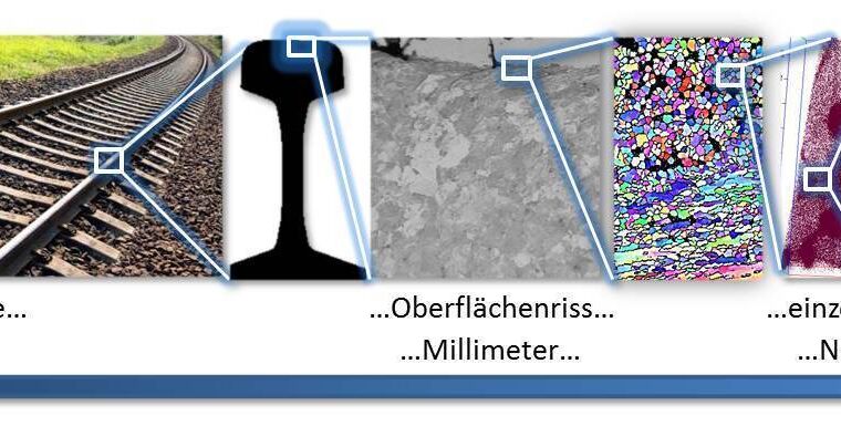 Quelle: MPIE Bildtext: Untersuchung von weiß anätzenden Rissen, illustriert am Beispiel von Bahnschienen. (Foto: Michael Herbig, Ankit Kumar, Max-Planck-Institut für Eisenforschung GmbH)