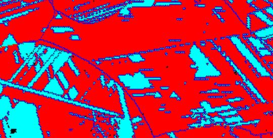Quelle: MPIE Bildtext: Die beiden Kristallstrukturen sind in diesem Querschnitt des Werkstoffs, der mithilfe der Elektronenrückstreubeugung aufgenommen wurde, an den beiden Farben zu erkennen. (Foto: © Nature 2016 / Max-Planck-Institut für Eisenforschung GmbH)