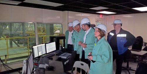 Quelle: SMS group Bildtext: Besichtigung der Produktion bei Big River Steel in den USA (v.l. Gregor Schneider, Leiter Technologie Elektrik und Automation Flachwalzwerke der SMS group GmbH; Edwin Eichler, Vorsitzender des Aufsichtsrats der SMS group; Harald Rackel, Mitglied der Geschäftsführung der SMS group GmbH, Dr.-Ing. Katja Windt, Mitglied der Geschäftsführung der SMS group GmbH; Roland Franz, SMS group GmbH, Gesamtinbetriebnahmeleiter bei Big River Steel (Foto: SMS group)