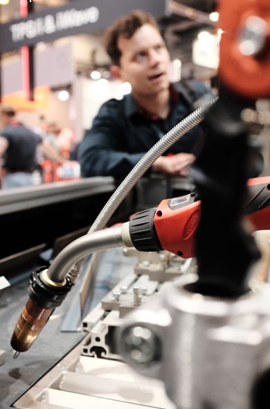 Fronius präsentierte auch zum ersten Mal den Velocity Assistant, kurz Velo genannt, für das manuelle MIG/MAG-Schweißen. Das innovative System begeistert Besucherinnen und Besucher durch eine unterstützte Brennerführung und konstante Schweißgeschwindigkeit. Schweißfachkräfte konnten Velo direkt vor Ort selbst ausprobieren und sich von den hochwertigen Nähten bei gleichzeitig reduzierter körperlicher Belastung überzeugen. Das Herzstück von Velo ist ein zweiter Draht ohne Lichtbogen und zusätzliche Gaszufuhr, der es erstmalig ermöglicht, die Schweißgeschwindigkeit beim Handschweißen zu steuern. Je nach Anwendung sind Geschwindigkeiten bis zu 200 cm pro Minute möglich, was für großes Staunen bei den Besucherinnen und Besucher sorgte. „Viele Interessierte zogen Vergleiche mit Robotern und waren erstaunt, dass diese Geschwindigkeiten und diese Präzision unter bestimmten Umständen nun auch beim Handschweißen möglich sind“, zeigt sich Peter Fronius zufrieden.