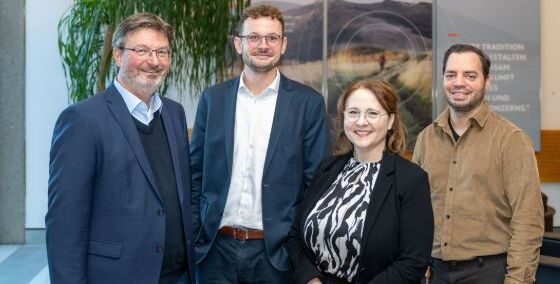 Bildtext (v.l.): Dr. Ralf Koch, Marcel Jost, Aurélia Götzel und Spiros Pappas.